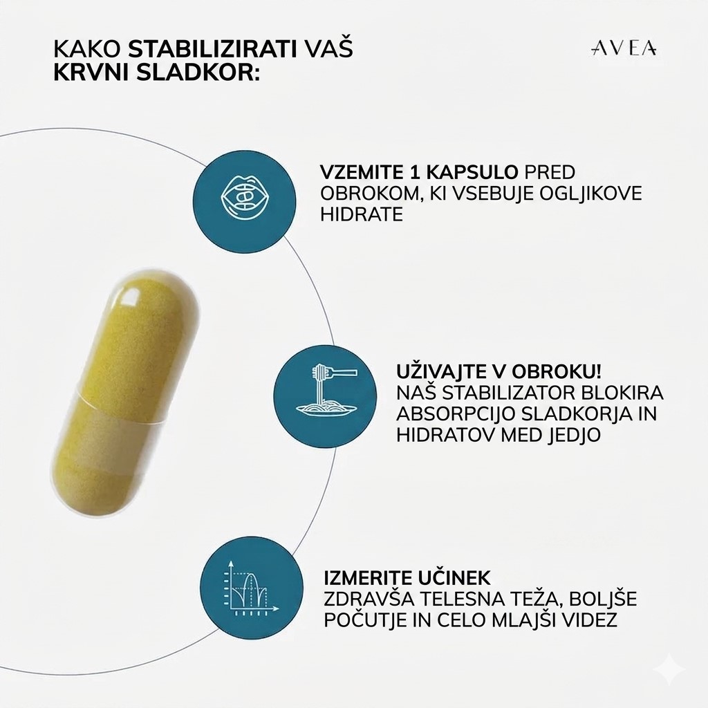 - vam ustreza preprosto jemanje kapsule pred obroki, ki vsebujejo veliko ogljikovih hidratov.